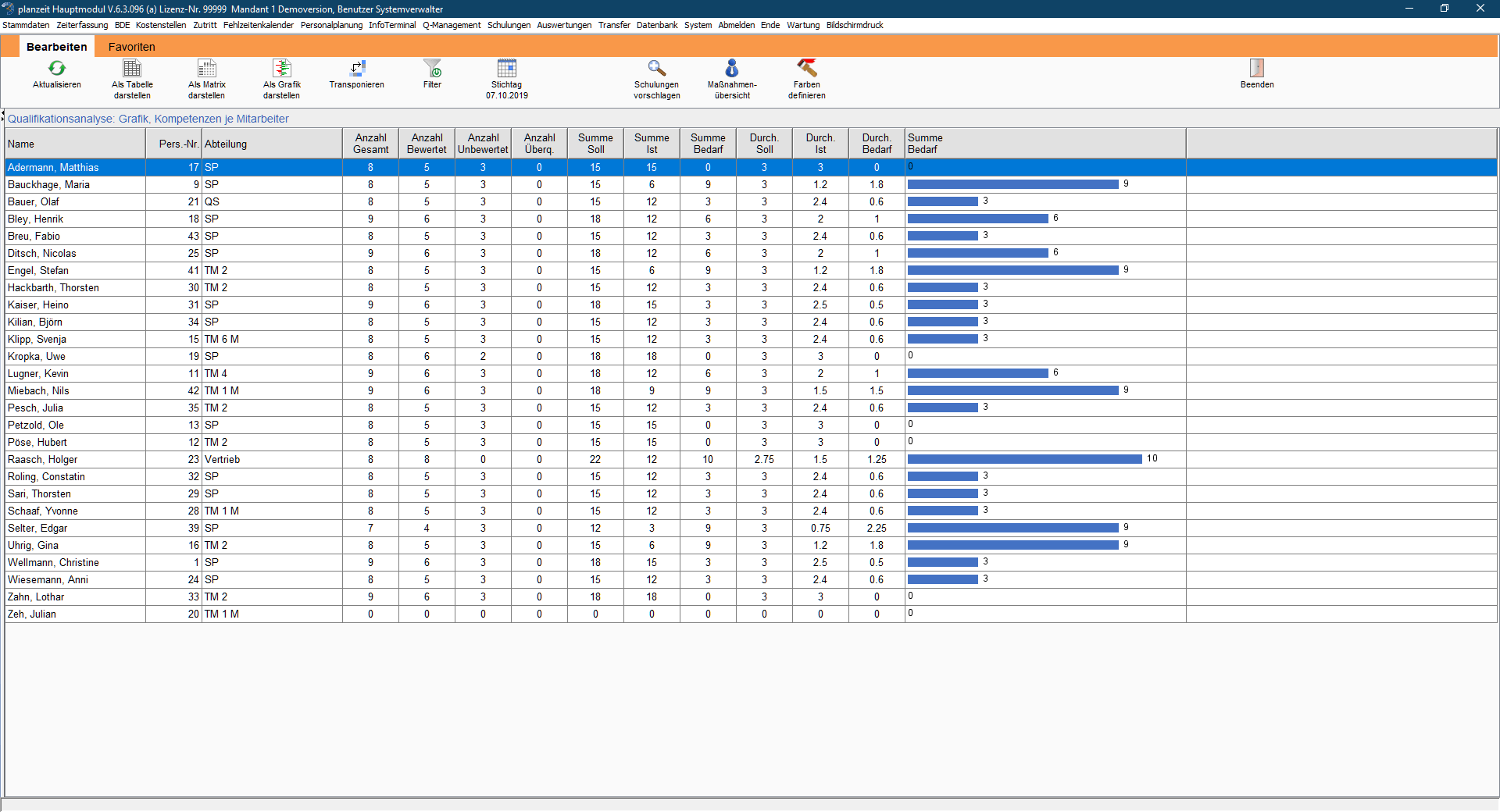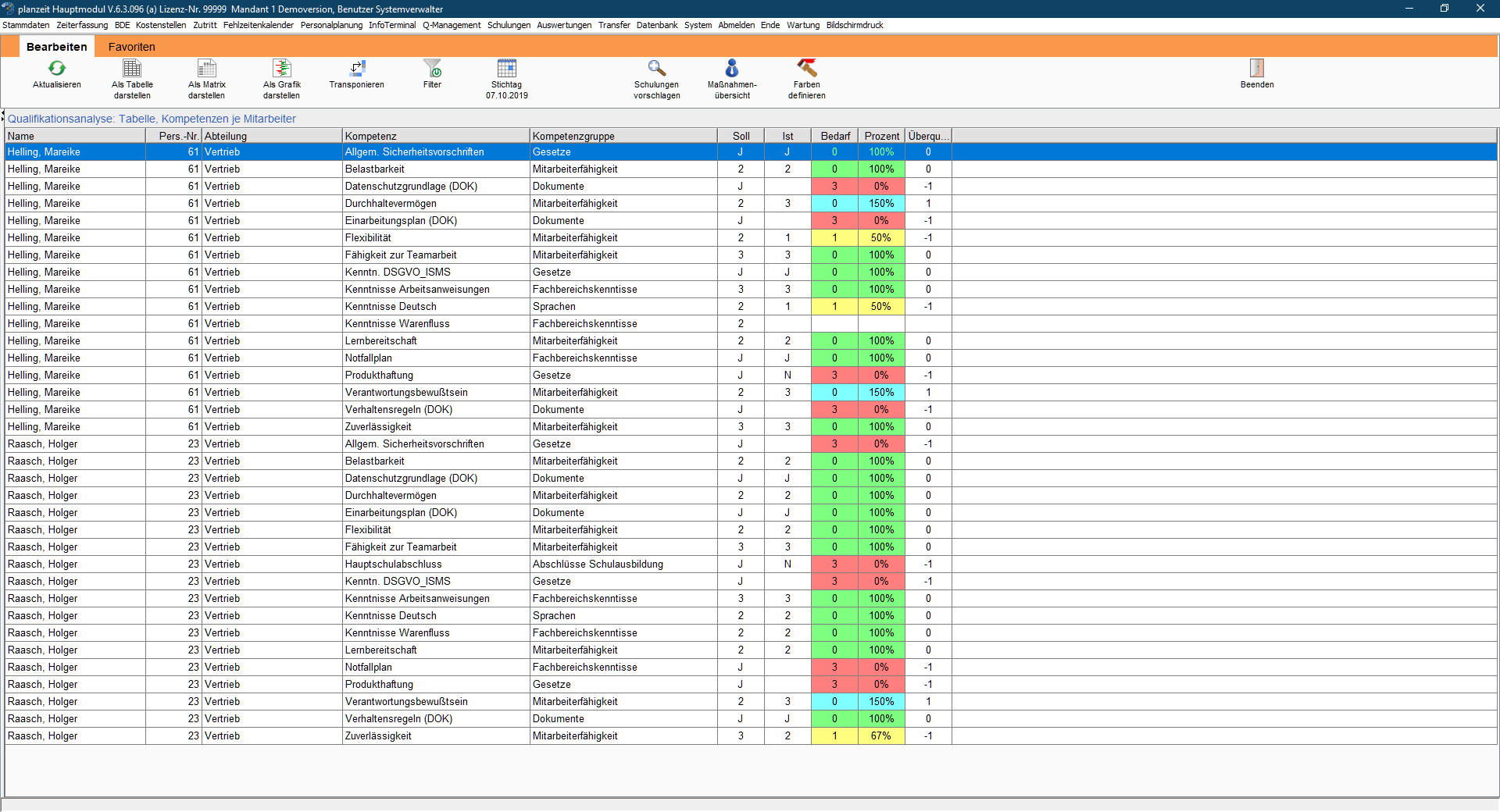 Nach der Definition Ihrer Anforderungen können Sie mit nur wenigen Mausklicks eine Qualifikationsanalyse über Ihre Mitarbeiterdaten durchführen und erhalten daraufhin eine Auswertung mit allen in Frage kommenden Mitarbeitern.