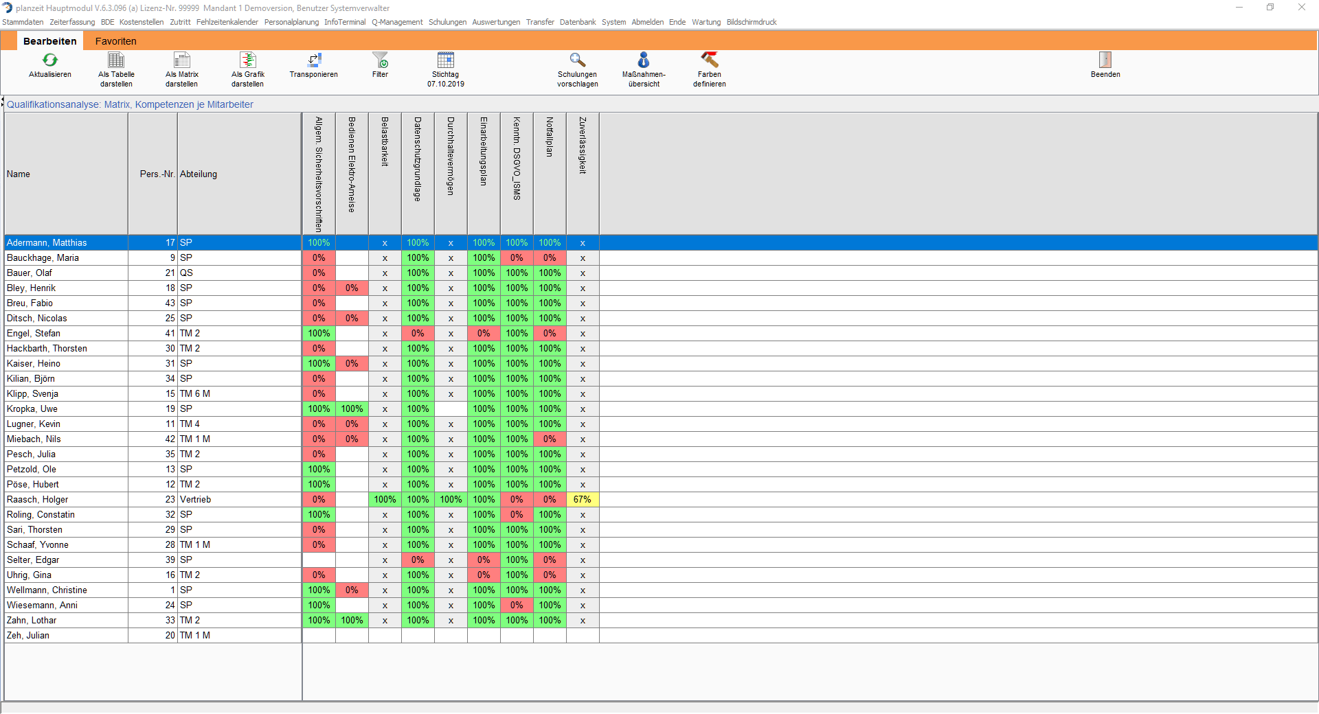 Aufgrund dieser Daten generieren Sie Soll-Werte, welche Ihnen später den aktuellen Bewertungsstand der einzelnen Qualifikationen mitarbeiterbezogen wiederspiegeln. Das Q-Management ermöglicht es Ihnen mittels systematischer Analyse, jederzeit für eine bestimmte Aufgabe den geeignetsten Mitarbeiter zu finden und entsprechend einsetzen zu können.